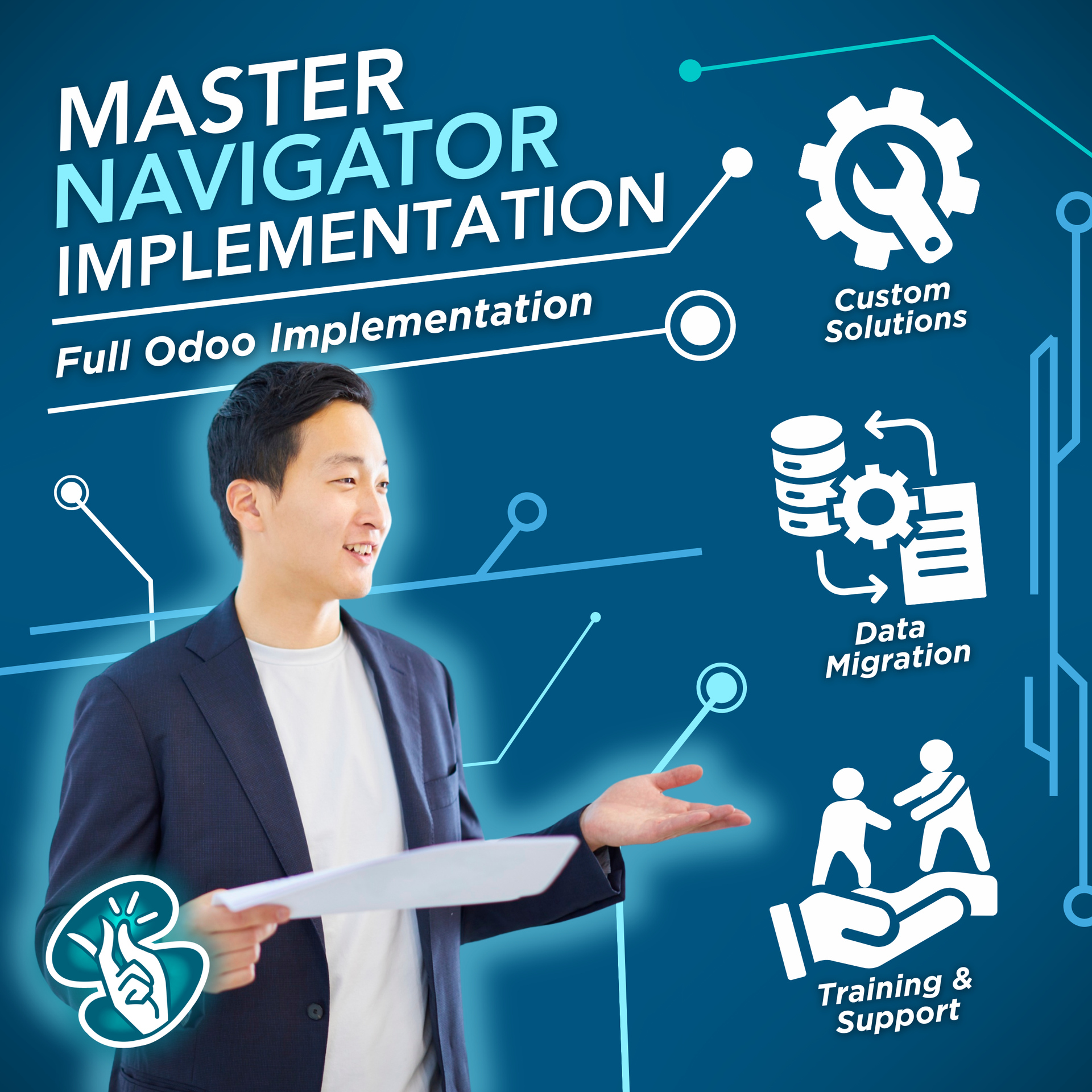 This guided navigator setup lets you build your own Odoo database—with expert direction in every session, at your pace and your budget.